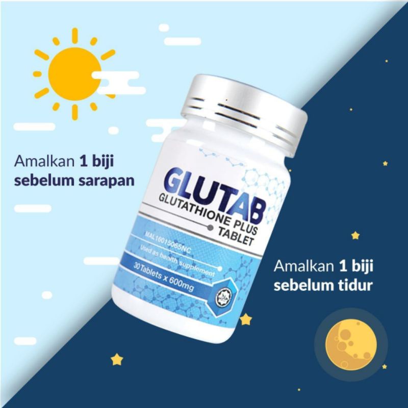 . Ambil 1 tablet pagi sebelum sarapan dan 1 tablet malam sebelum makan malam. Wajah Berseri Dengan Glutab Glutathione. 1 Botol Glutab 1 Sabun Gluta.